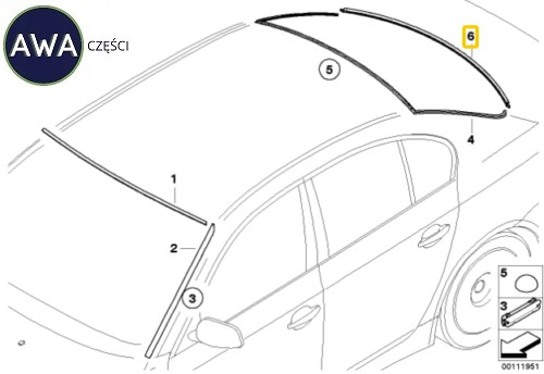 Oryginalna uszczelka szyby tył dolna, dedykowana do BMW Serii 5 Limousine E60.