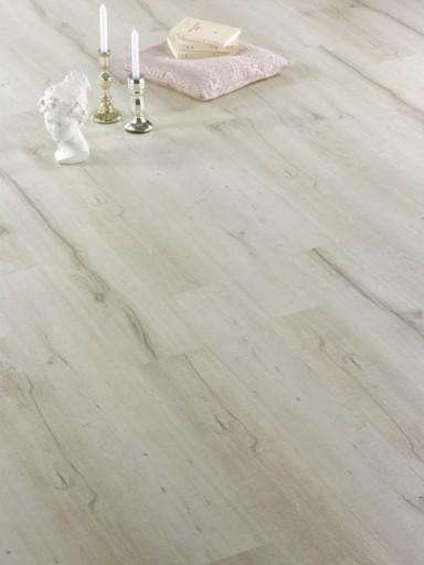 Francuska klasyka z fabryki Alsapan , dekor z kolekcji SOLID 409 CASSANDRA w drewnianej tonacji, jasny chłodny odcień bieli z przeplatającymi się czarnymi liniami imitującymi line drewna. Czterostronna V-fuga ( widoczne łączenie ) oraz bardzo realistyczny wzór nadaje podłodze eleganckiego i naturalnego wyglądu.