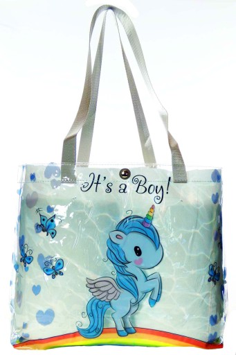 - najmodniejszy motyw sezonu przezroczysta torba na plażę z kolorowym nadrukiem