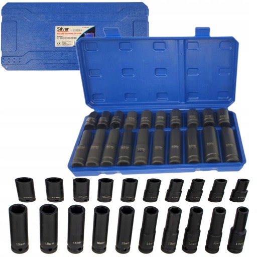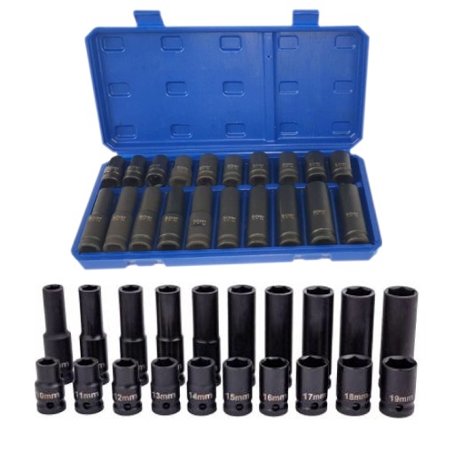 KOMPLET NASADEK UDAROWYCH KRÓTKICH I DŁUGICH 1/2" 10-19MM