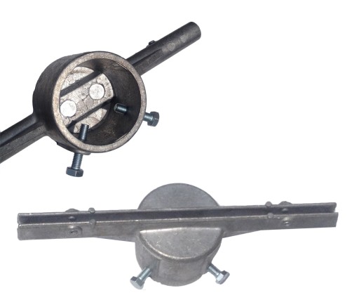 Uchwyt mocujący wykonany jest z aluminiowego odlewu do zamocowania na szczycie rury. Dzięki zastosowaniu 2 śrub mocujących możliwy jest montaż na rurach o średnicy od 40 - 60 mm
