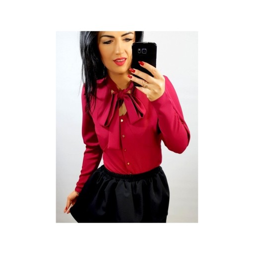 Рубашка с золотыми пуговицами, завязанным бантом, бордовый экрю, S