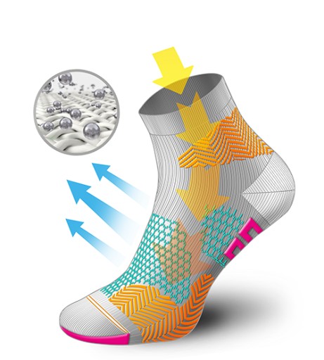 Poliamidowe włókna mikrofibry są bardzo cienkie, ale jednocześnie wytrzymałe i odporne na rozdarcie. Materiał dobrze dopasowuje się do stopy, jest przyjemny w dotyku i skutecznie odprowadza wilgoć.