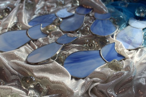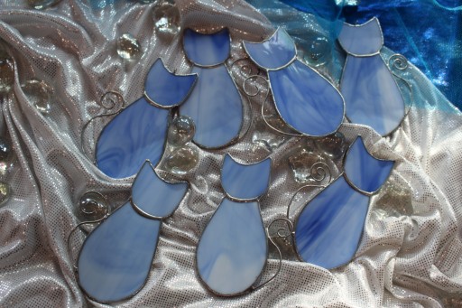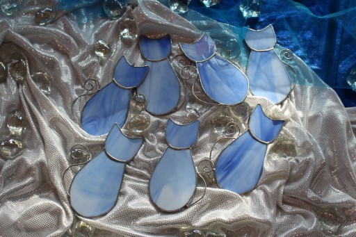 Kotki witrażowe z niebieskiego szkła.