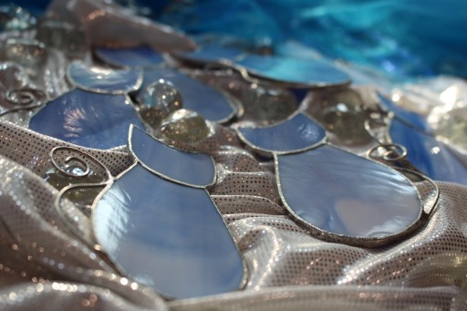 Wykorzystane szkło witrażowe połączone jest ze sobą miedzią oraz cyną.