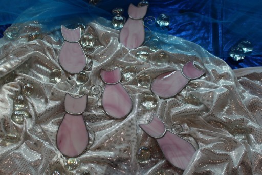 НАБОР из 5 шт. Тиффани розовый витражный кот.