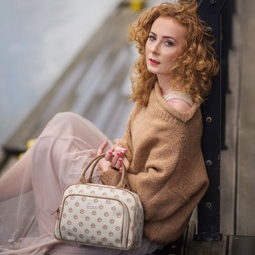 Designerska kosmetyczka w beżowym kolorze z detalami w kolorze złotym pochodzi z kolekcji Gold. Znak wodny oraz duże metalowe logo w kolorze złotym podkreśla oryginalność produktu.