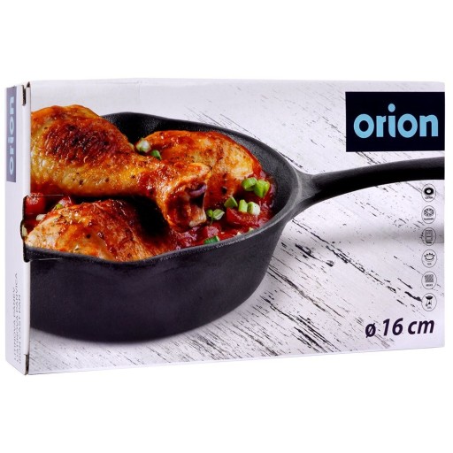 Solidna patelnia żeliwna. Odpowiednio użytkowana posłuży długie lata. Przydatna w każdej kuchni, jest niezwykle odporna, więc możemy korzystać z niej na kuchence, w piekarniku oraz na grillu. Należy pamiętać o jej odpowiedniej konserwacji. Po każdym użyciu umyć, wytrzeć suchą szmatką do sucha i natłuścić. Zapakowana w kolorowe, firmowe opakowanie, więc stanowi również świetny pomysł na prezent. Oryginalny produkt czeskiej marki Orion. Wyprodukowano zgodnie z europejskimi standardami.