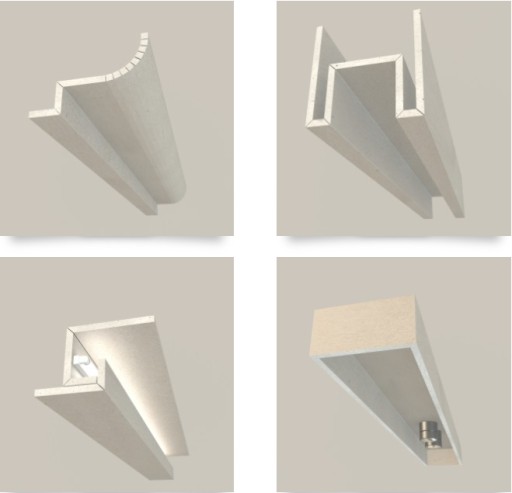 - Wykończenie krawędzi łukowej sufitu podwieszanego,