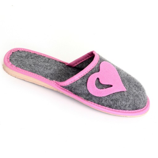 Zewnętrzna warstwa wykonana jest z tkaniny oddychającej typu filc kolorze szarym z różową ozdobą typu serce.