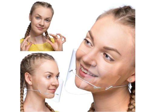 Przyłbica ochronna na twarz zmniejszająca ryzyko zakażenia drogą kropelkową. Osłaniając twarz, a w szczególności usta i nos, blokuje przenikanie drobnoustrojów.