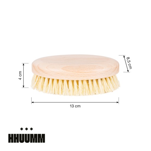 Szczotka z drewna bukowego, gęsto nabita najwyższej jakości naturalnym włóknem kaktusa agawy, przeznaczona do masażu ciała na mokro bądź na sucho, pomaga usunąć zrogowaciałą warstwę naskórka i polepszyć krążenie w skórze
