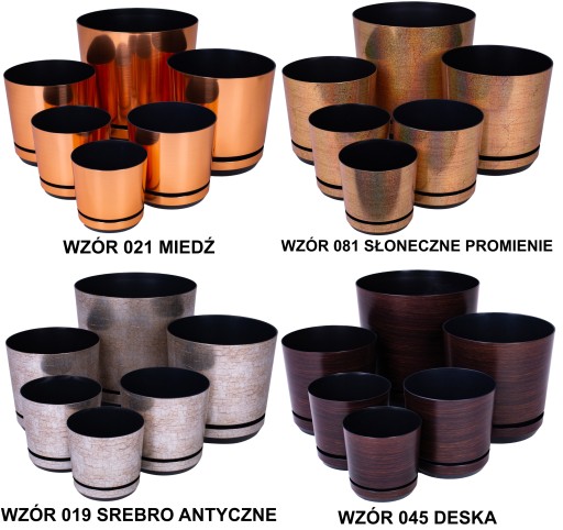 Doniczki z serii Dekor dostępne są w 6 rozmiarach (średnica mierzona na górze doniczki):