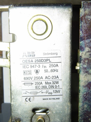Wyłącznik ABB OESA 250 D3P2 250A 690V 12 kV
