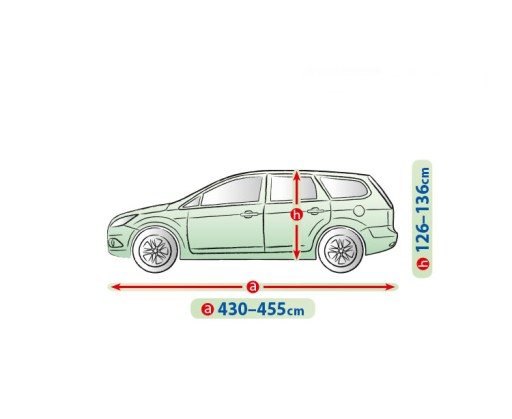 Wyznacznikiem jest zdjęcie, przedstawiające kształt samochodu, na który pasuje pokrowiec - należy porównać kształt swojego samochodu ze zdjęciem produktu. Obwód samochodu nie może przekraczać podanego w opisie wymiaru plandeki- musi być nieco mniejszy lub równy.