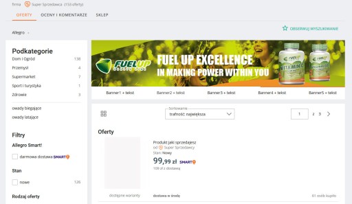 Banery lista aukcji - Banery prezentują wybraną ofertę produktów i wyświetlane są na liście Twoich aukcji a także na stronie głównej sklepu.