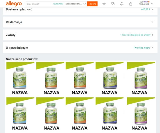 Seria produktowa - kafelki z grafikami produktów oferowanych przez Twój sklep wyświetlają się pod bannerem głównym sklepu oraz w każdej aukcji na samym dole w sekcji Nasze serie produktów