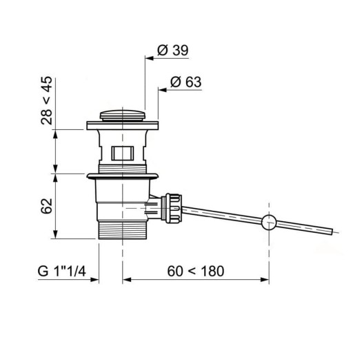 Spust syfonu umywalki z korkiem automatycznym, 1 1/4'' x 63 mm, z przelewem