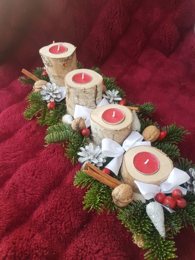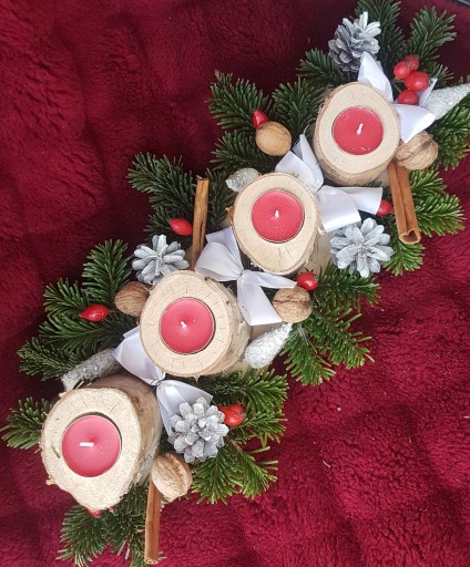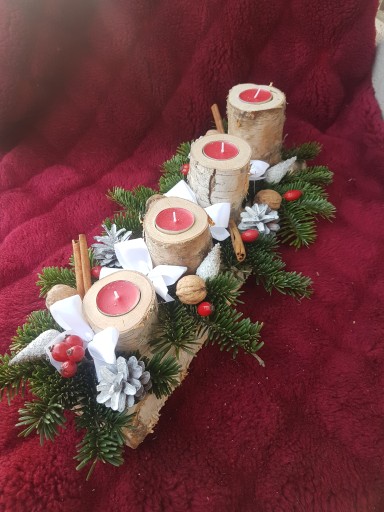 Stroik świąteczny wykonany z naturalnych składników (w znaczącej większości) wspaniale udekoruje dom, ożywi go i ubogaci swoim zapachem, a domowników wprowadzi w cudowny nastrój oczekiwania na Święta. Taki wieniec może pozostać na stole na czas Wigilii, jak również na cały okres Bożego Narodzenia. Super sprawdzi się też w roli prezentu świątecznego. Długość stroika to ~45 cm, a szerokość ~18cm.