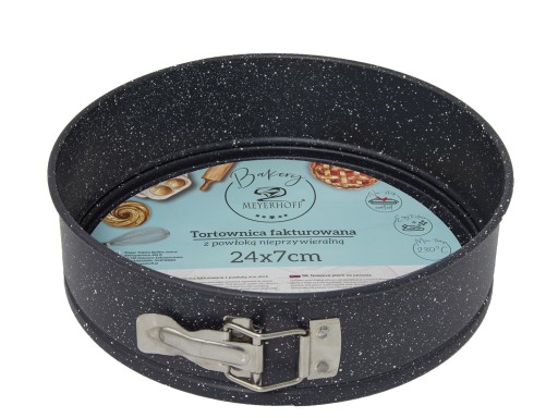 Tortownica z fakturowanym dnem została wykonana z wysokiej jakości stali węglowej pokrytej powłoką non-stick, która uniemożliwia przywieranie ciasta. Powłoka ze stali węglowej zapewnia równomierne nagrzewanie się blachy. Boki zapinane na klamrę, co daje możliwość bezproblemowego wyjęcie ciasta, a wyciągane dno umożliwi podanie ciasta bezpośrednio na niej. Praktyczny i niezbędny produkt, który z pewnością się przyda w każdej kuchni. Szczególnie dla osób ceniących tradycyjne, domowe wypieki. Zaleca się stosować przybory silikonowe lub drewniane aby nie uszkodzić powierzchni.