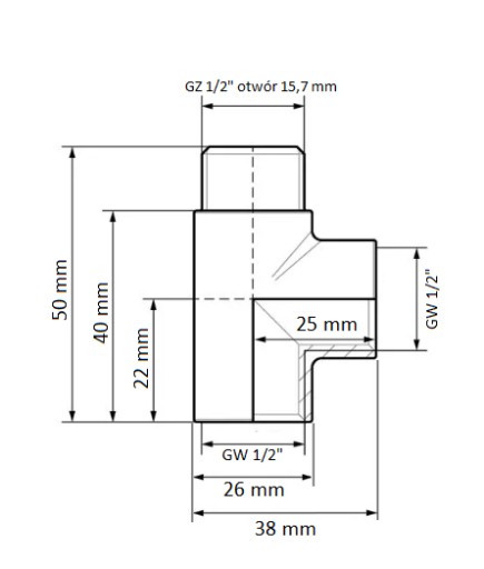 Trójnik do grzałki elektrycznej GW ½” x GW ½” x GZ ½”