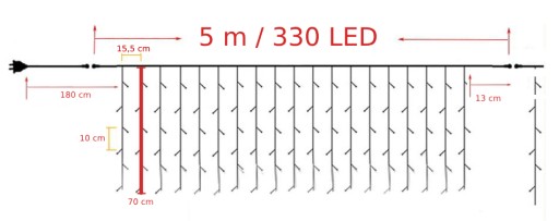 Kurtyna posiada aż 330 diod LED rozmieszczonych na długości 5 metrów, co sprawia, że Twój dom lub ogród zostaną oświetlone w magiczny sposób.