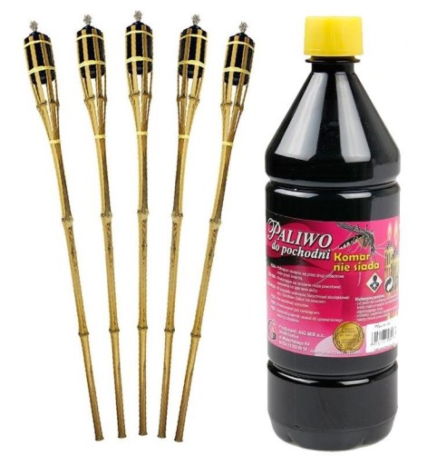 🌟 Pochodnia bambusowa 120cm 5 szt + paliwo do pochodni - ,,Komar nie siada,, 1l