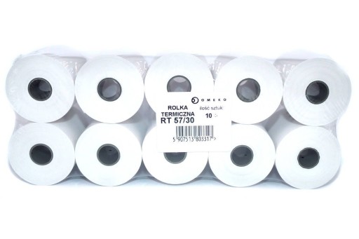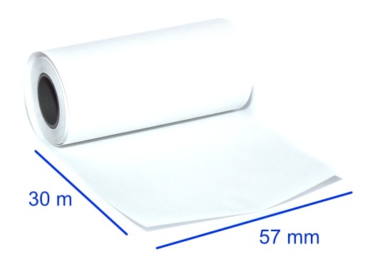 Rolki termiczne do kas fiskalnych i terminali płatniczych o szerokości 57 mm i długości 30 m.