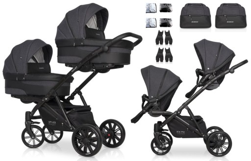 ZESTAW RIKO TERAM WÓZEK BLIŹNIACZY W WERSJI 2W1 z adapterami Maxi-Cosi