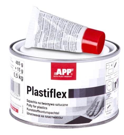APP Plastiflex to poliestrowa szpachla wypełniająca o podwyższonej elastyczności przeznaczona do wypełniania wgłębień oraz wyrównywania nierówności podczas napraw elementów z tworzyw sztucznych. Posiada bardzo dużą elastyczność i znakomitą przyczepność do większości tworzyw sztucznych. Dzięki kremowej konsystencji jest łatwa do modelowania na powierzchniach o skomplikowanych kształtach.