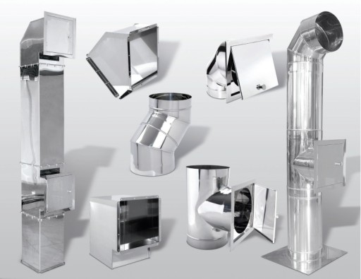Element zsypu umożliwiający zamknięcie komory wrzutowej - ze względów estetycznych i praktycznych. Wykonany ze stali kwasoodpornej o gatunku 1.4404 oraz grubości 1 mm. Wytworzony w najnowszej technologii spawania plazmowego z zastosowaniem połączenia kielichowego o długości 50 mm