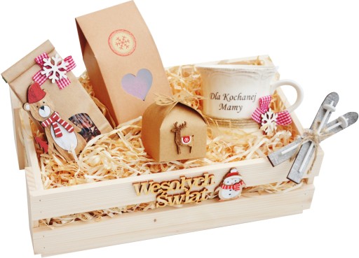 Piękny i praktyczny prezent na Święta Bożego Narodzenia - porcelanowy kubek, sypana herbata, czekoladowe cukierki, czekoladowe pierniki - całość pięknie ozdobiona i zapakowana. Doskonały prezent pod choinkę dla najbliższych.
