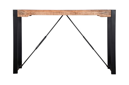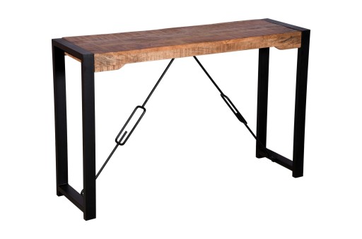 Kolekcja ponadczasowych mebli z drewna mango. Konsola to mebel, który pełni funkcję dekoracyjną jak również praktyczną, świetnie uzupełni wnętrze holu jak również sprawdzi się w salonie czy biurze. Stabilny i wytrzymały stolik konsolowy osadzony na salowych nogach w kolorze czarnym.
