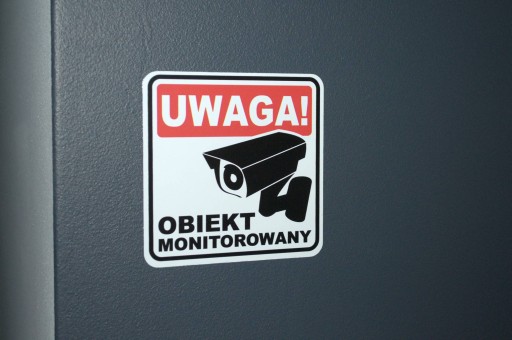 Wysokiej jakości naklejka "Uwaga! Obiekt monitorowany", drukowana w technologii lateksowej na folii samoprzylepnej. Gwarancja najwyżej jakości i trwałości.