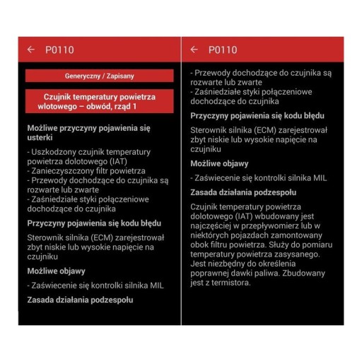 * Lista obsługiwanych parametrów i danych jest ściśle związana z podłączanym samochodem.
