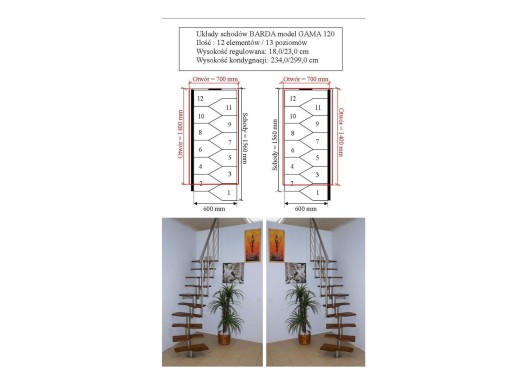 - Ilość elementów: 12 szt. stopni / 13 wysokości