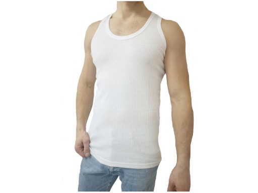 PODKOSZULKA MĘSKA BIAŁA, PRĄŻKOWANA