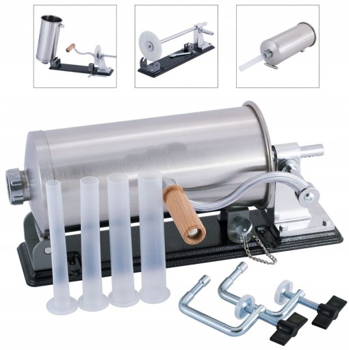 ⭐ Nadziewarka umożliwia produkcję szerokiego asortymentu kiełbas, od kabanosów i parówek, do klasycznych kiełbas oraz salami w zależności od wielkości lejka użytego do napełniania.