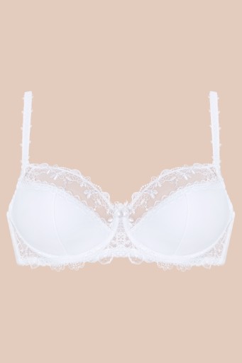 Biustonosz wykonany jest z pianki i elastycznej dzianiny w dolnej części miski oraz pięknego haftu w górnej części. Mostek obszyty koronką z kwiatowym motywem, podszyty stabilnym tiulem oraz plecy z elastycznej mikrofibry świetnie utrzymują biustonosz w odpowiedniej pozycji. Novato to biustonosz, który pokochały tysiące zadowolonych użytkowniczek.