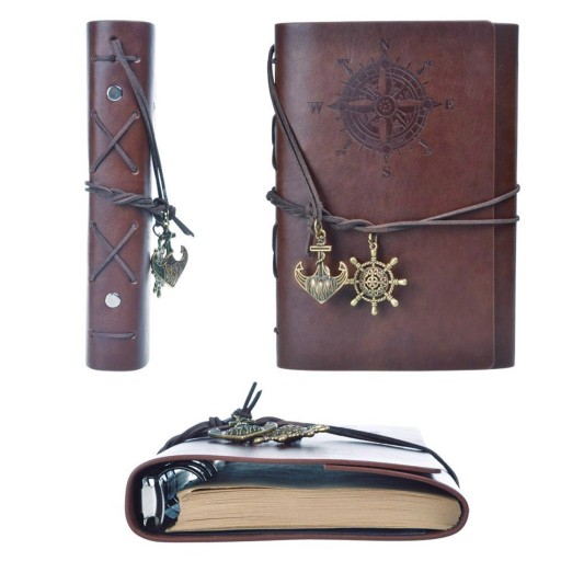 Elegancko wykonany dziennik, wiązany rzemykiem z przywieszkami w marynarskim stylu, zachwyci każdą osobę, która kocha podróże.