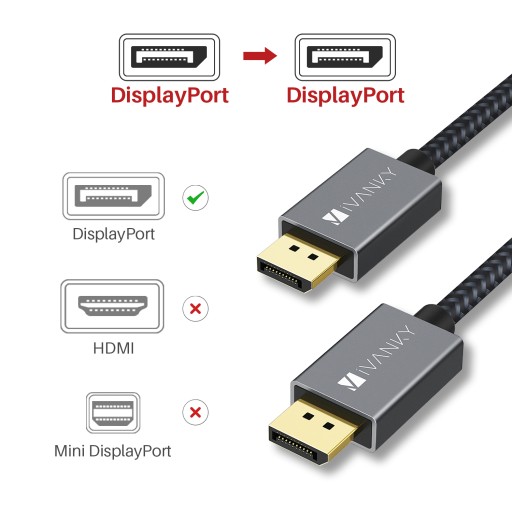 Wysokiej jakości kabel DisplayPort - DisplayPort innowacyjnej firmy iVANKY do Twojego sprzętu Audio/Video o długości 2 metrów.