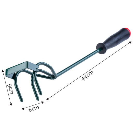 Solidne narzędzie napowietrza glebę, ułatwiając sadzenie. Jest idealne do stosowania w trudno dostępnych miejscach, przydaje się do przygotowywania gleby pod wysiew nasion lub wymierzaniu podłoża z nawozem użyźniającym glebę. Dodatkowo pracę usprawnia strzemiączko, które okazuje się przydatne przede wszystkim przy wyczesywaniu niechcianych chwastów z ziemi. Dopasowana do dłoni rączka z tworzywa sztucznego odpowiada za kontrolowanie pracy narzędzia.
