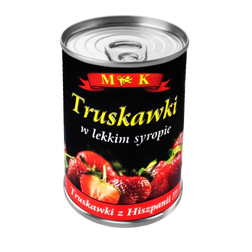 Soczyste truskawki zHiszpanii w puszce zalane delikatnym syropem. Smaczny dodatek do deserów, jogurtów, bitej śmietany, lodów i ciast. Produkt zamknięty w puszce i pasteryzowany może być przechowywany nawet kilka lat stanowiąc zapas owoców na zimę.