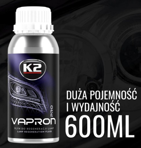K2 Vapron Pro refill to specjalistyczny płyn służący do profesjonalnej regeneracji reflektorów samochodowych wykonanych z tworzyw sztucznych.