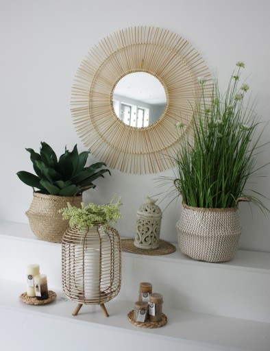 Dekoracyjny kosz pleciony ręcznie z trawy morskiej z uszami. Kosz można dowolnie ułożyć – z uszami do góry lub do dołu, wówczas tworzy praktyczną misę. Idealny do aranżacji wnętrz.