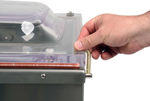 Pokrywa pakowarki wykonana jest z bardzo masywnego tworzywa sztucznego w transparentnym kolorze. Umożliwia to śledzenie procesu pakowania i pełną jego kontrolę.