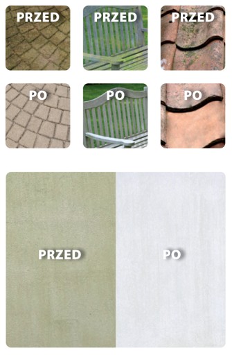GREENSTOP jest produktem, który skutecznie usuwa glony, mech oraz wszelkie zielone osady z podjazdów, dachów, tarasów, mebli tarasowych, drewnianych podłóg, rolet, nagrobków, kostki brukowej itd. bez konieczności szczotkowania lub szorowania!
