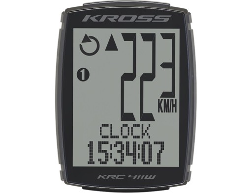 Zaawansowany technicznie licznik rowerowy Kross KRC 411W posiada kilkanaście funkcji, które pozwolą przeanalizować wszystkie parametry treningu kolarskiego. Funkcje czasu pozwalają na sprawdzenie bieżącej godziny oraz kontrolę długości trwania jazdy. Licznik ma możliwość zapamiętania ustawień dla drugiego koła oraz licznik całkowitego dystansu dla dwóch użytkowników, dzięki czemu z powodzeniem może być stosowany wymiennie na dwóch rowerach. Został on także wyposażony w termometr, a w komplecie znajduje się ponadto sensor prędkości 122 kHz. Licznik Kross może pracować w trybie oszczędnym w razie niskiego poziomu naładowania baterii (na wyświetlaczu można łatwo sprawdzić stan ich zużycia).