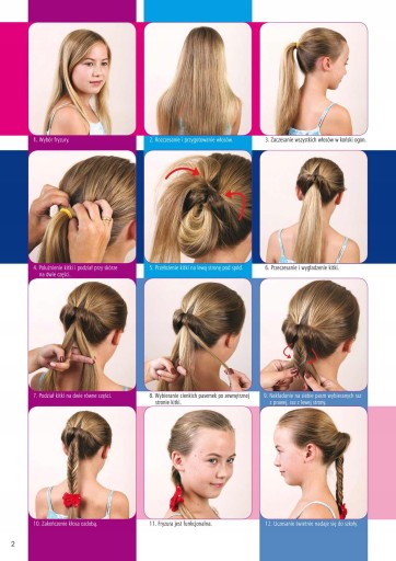 - Przedstawione zostały uczesania łatwe, szybkie i wygodne, odpowiednie na każą okazję: do szkoły, na urodziny, na świąteczne dni, Pierwszą Komunię Świętą.