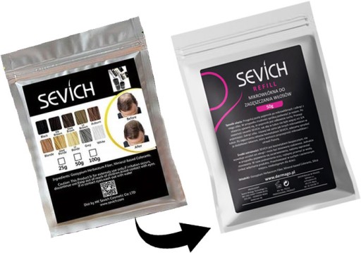 Sevich to mikrowłókna służące do zagęszczania włosów stworzone z naturalnych włókien roślinnych. Łączą się z włosami sprawiając wrażenie jakby włosów były znacznie więcej. Eliminują przerzedzenia i prześwity skóry głowy, a włosy wyglądają zdrowo i naturalnie.